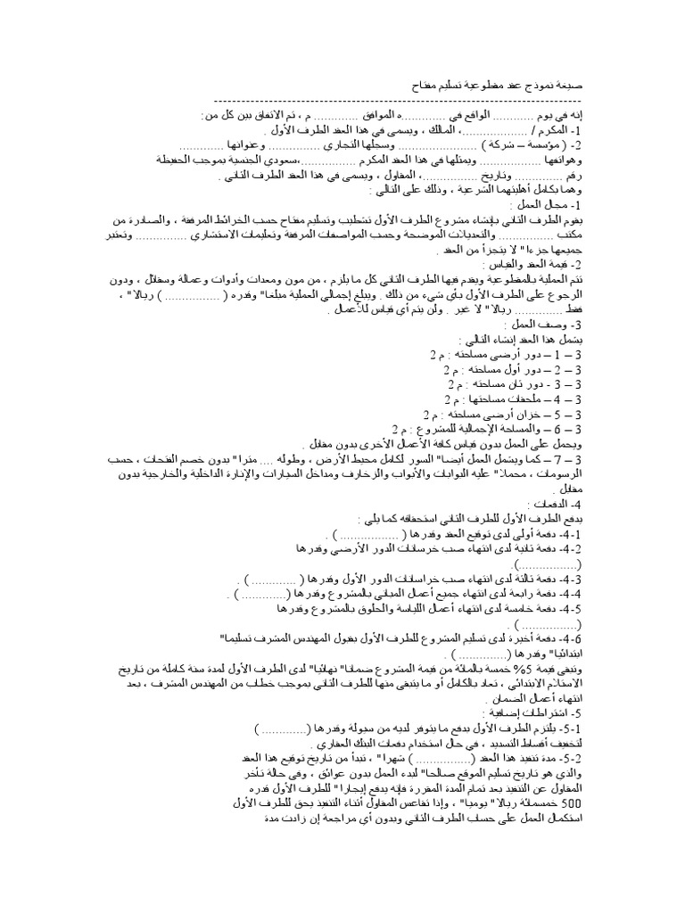 صيغة نموذج عقد مقطوعية تسليم مفتاح Pdf